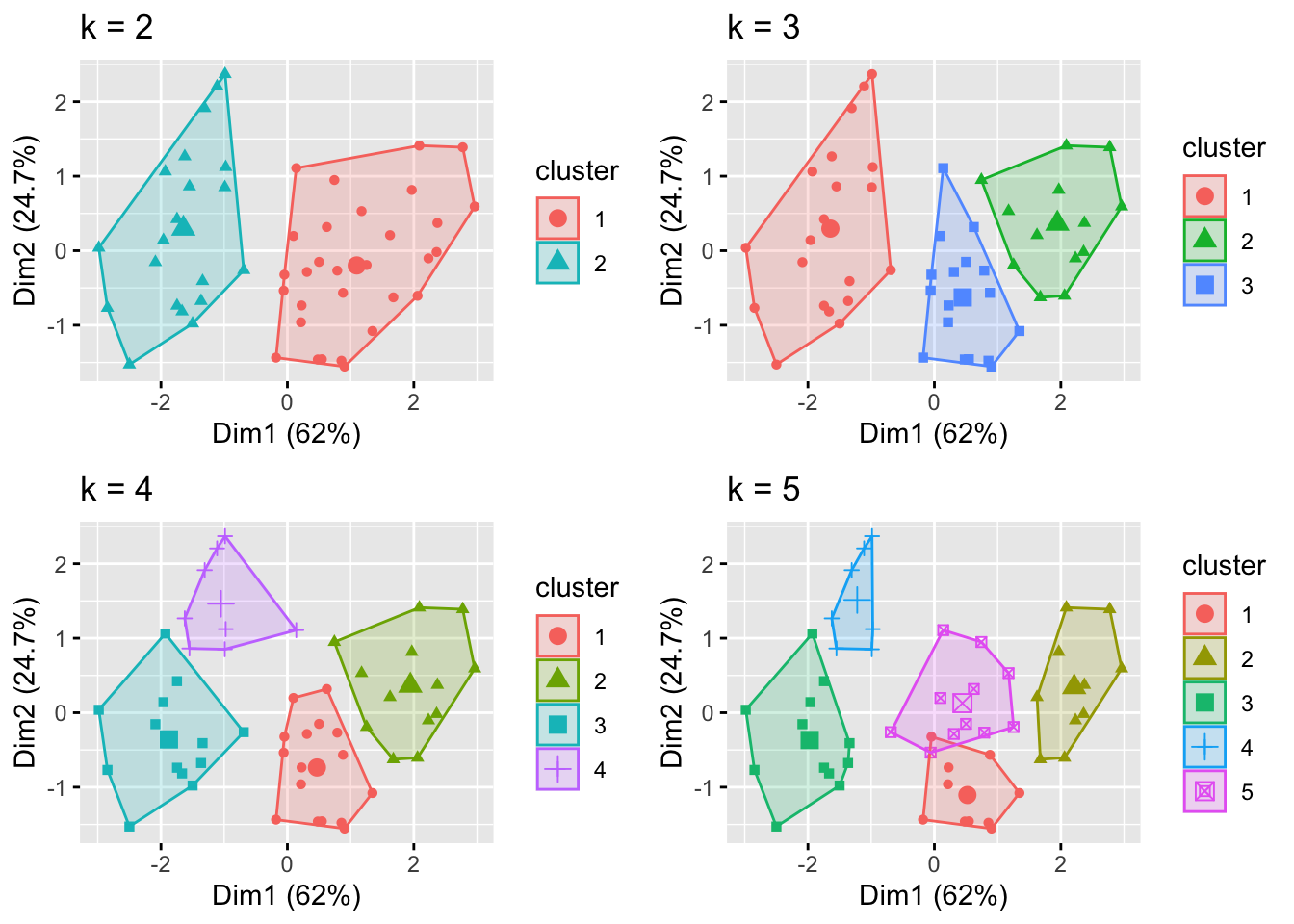 fviz_cluster - now let’s try with , by visual inspection , do you think it is better?